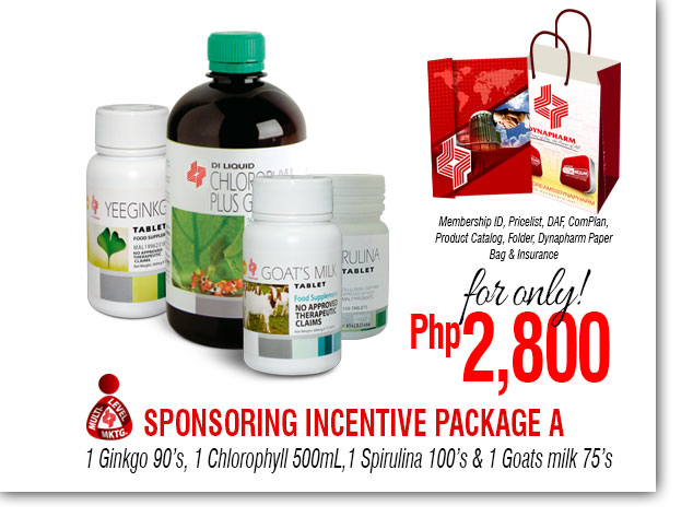1 Ginkgo 90's, 1 Chlorophyll 500mL, 1 Spirulina 100's, 1 Goatsmilk 75's, Insurance & Sales Kit